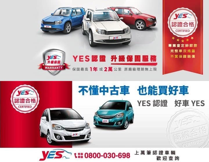 YES認證為匯豐汽車100%投資之新品牌,匯豐汽車為台灣知名之汽車公司,深耕台灣汽車市場40年,2014年開始投入YES中古車認證專業查定師之培訓工作,與中華民國汽車工程學會雙重考核,擁有最優質的檢測技術與完善的通路據點,建立第三方公正的平台,以專業的車輛查定、便利的服務據點、安全的交易服務三大特色,解決您賣車疲於奔命的困擾,讓賣車不再是一件麻煩事!